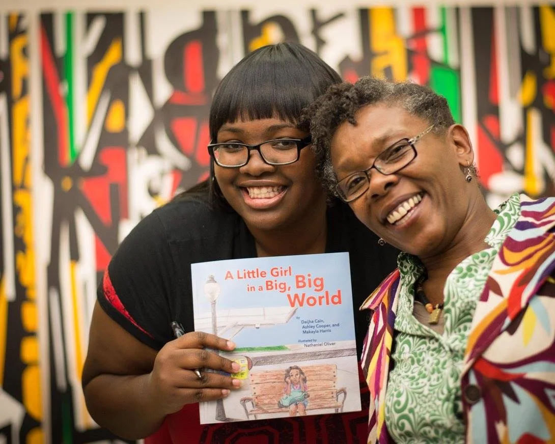 Yesterday was the Book Launch for Reach’s 2015 books, and we couldn’t be more excited for our authors. So much celebration, so much pride, and so much support for these talented and important young voices. We had the chance to catch up with new author Daijha Cain, who co-wrote A Little Girl in a Big, Big World, during the launch at the Pepco Galley. Daijha dazzled us with her imagination and motivation when we worked with her this summer, and she’s already looking to the future!
